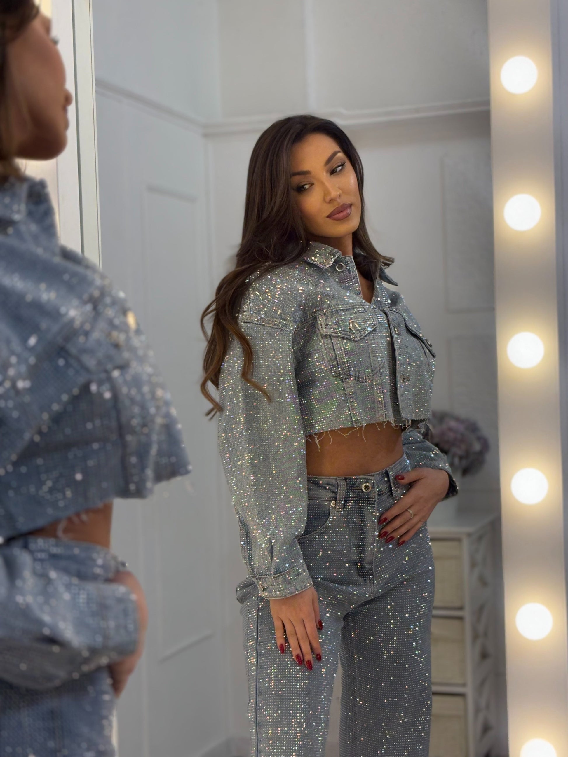 Shine bright in this Silver Sequin Denim Crop Jacket & Pants Set. The sparkling sequins and cropped jacket create a trendy, eye - catching look. Perfect for parties or nights out. Lightweight design ensures fast page load. Shop now for a glamorous, head - turning outfit!