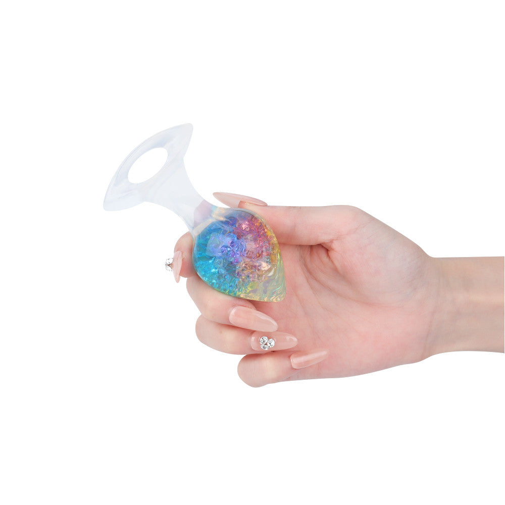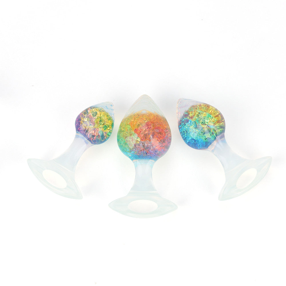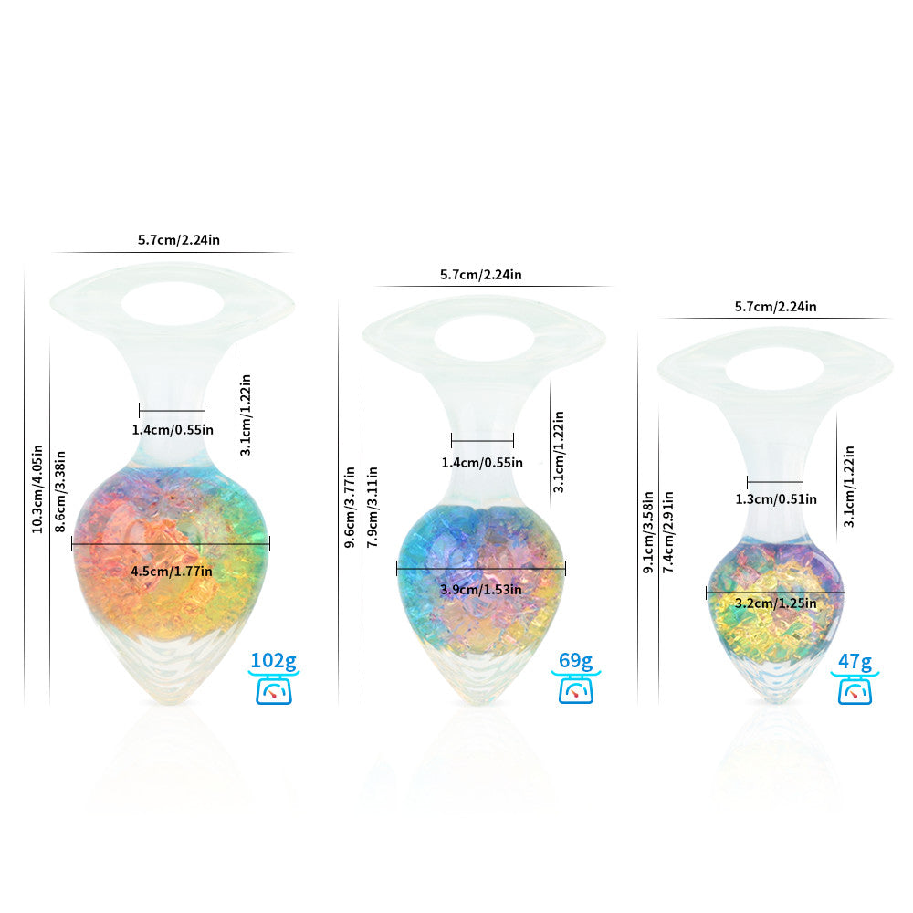 Meet GlowBum Butt Plug: a visually stunning plug made from transparent liquid silicone wrapped around a sparkling glass core. It’s soft, silky, and odorless on the outside—dazzling and neon-shimmery on the inside. With an anchor-style base for secure, long-term wear and three sizes for progressive training, GlowBum turns every move into a show.