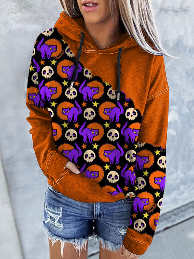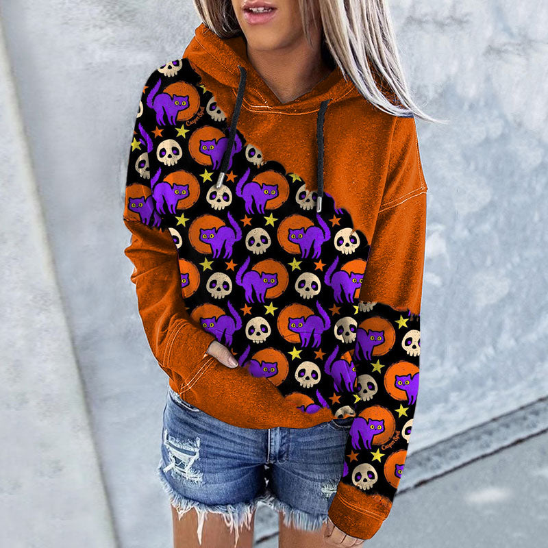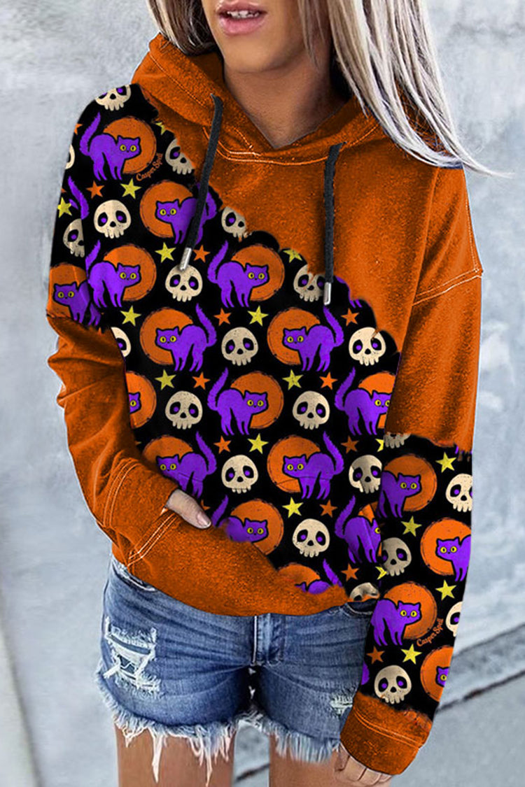 Halloween Cat Print Hoodie