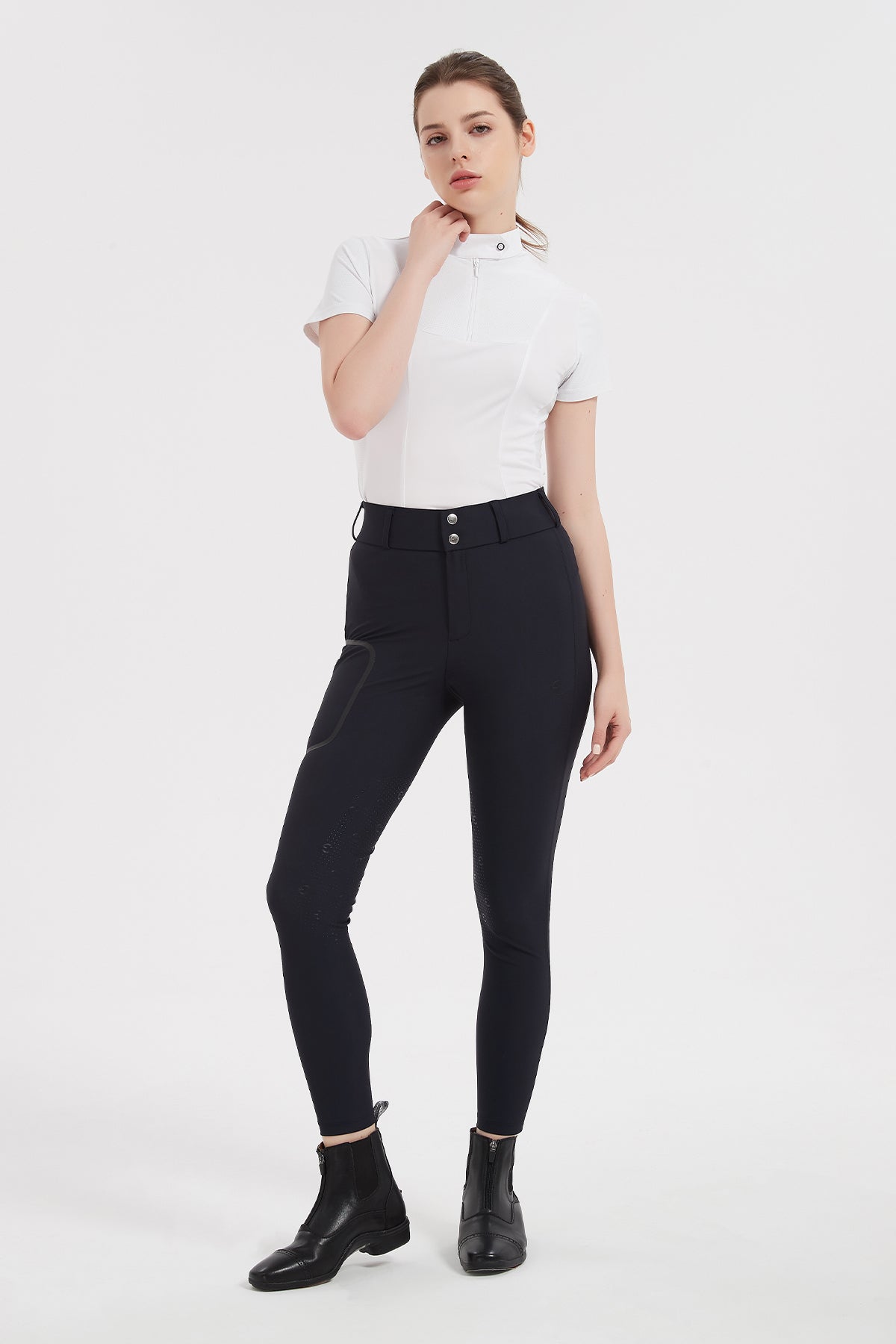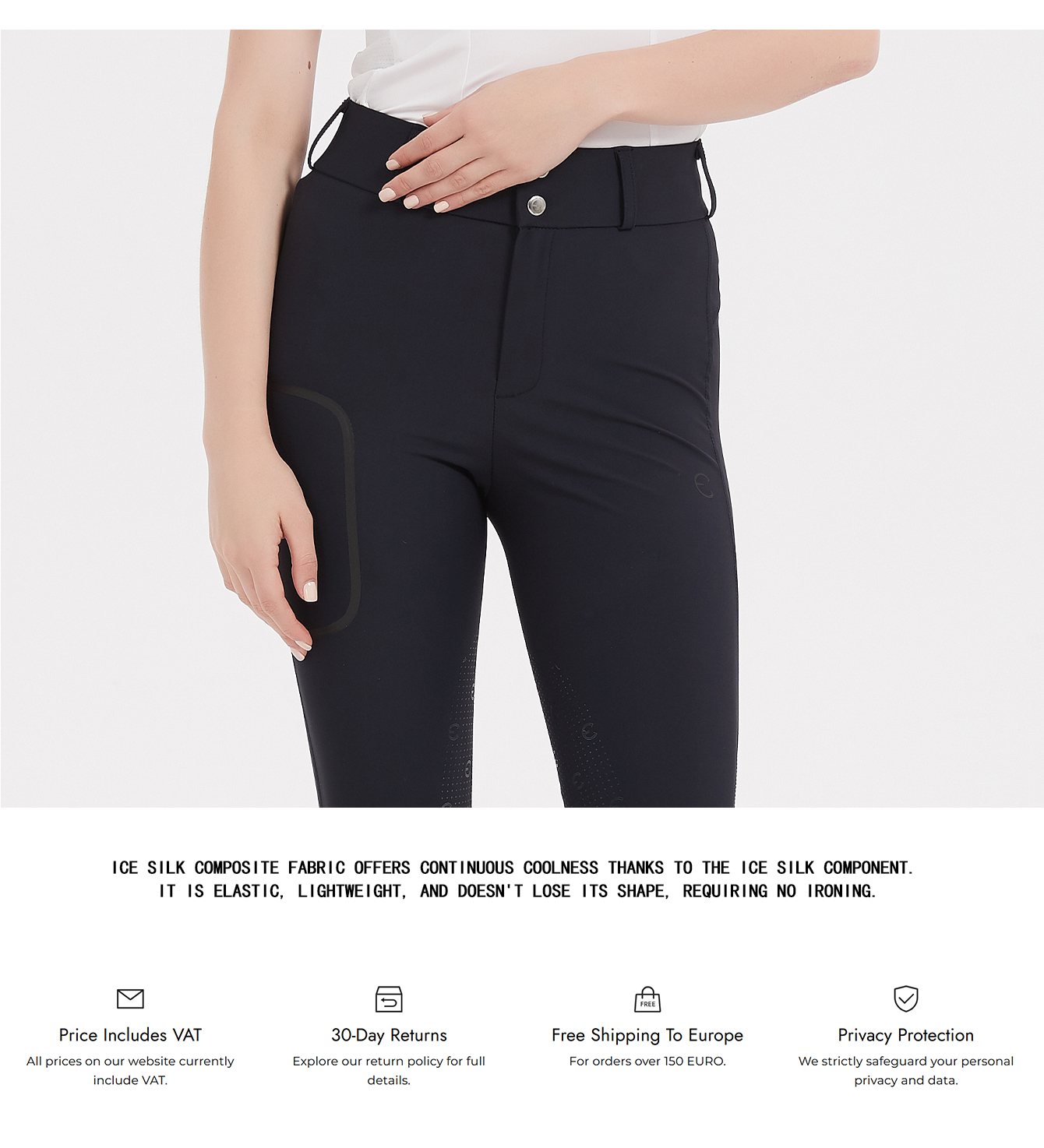 Mashang Equine Cuprammonia fiber laminated fabric:Cuprammonia fiber,giving constant cooling feel, ultra light, stretch, wrinkle resistant; Design Features: seamless pressing technology make the perfect press-glued pocket, larger area of grip,high waist,YKK zip, customized button made in Germany.