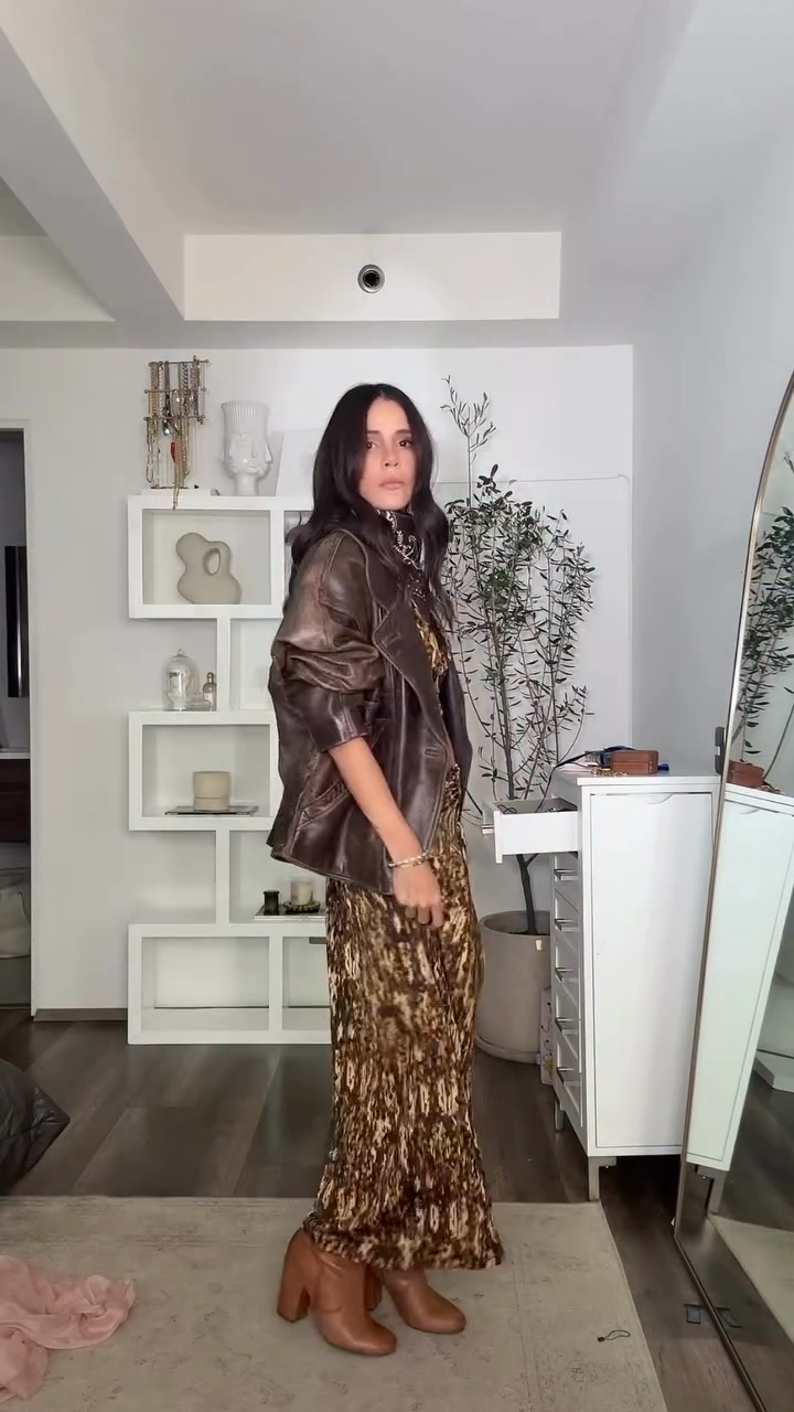 Elevate your style with this Leopard Print Cutout Maxi Skirt Set. Paired with a brown leather jacket, it creates a bold, trendy look. Perfect for making a fashion statement at events or outings. Lightweight design ensures fast page load. Shop now for a chic, standout ensemble!