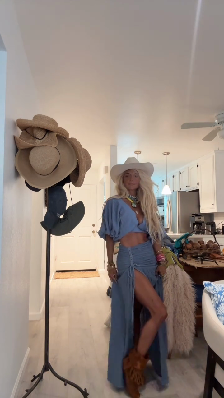 - Western - inspired Accessories: Such as cowboy hat, chunky necklace, and booties enhance the outfit's aesthetic.