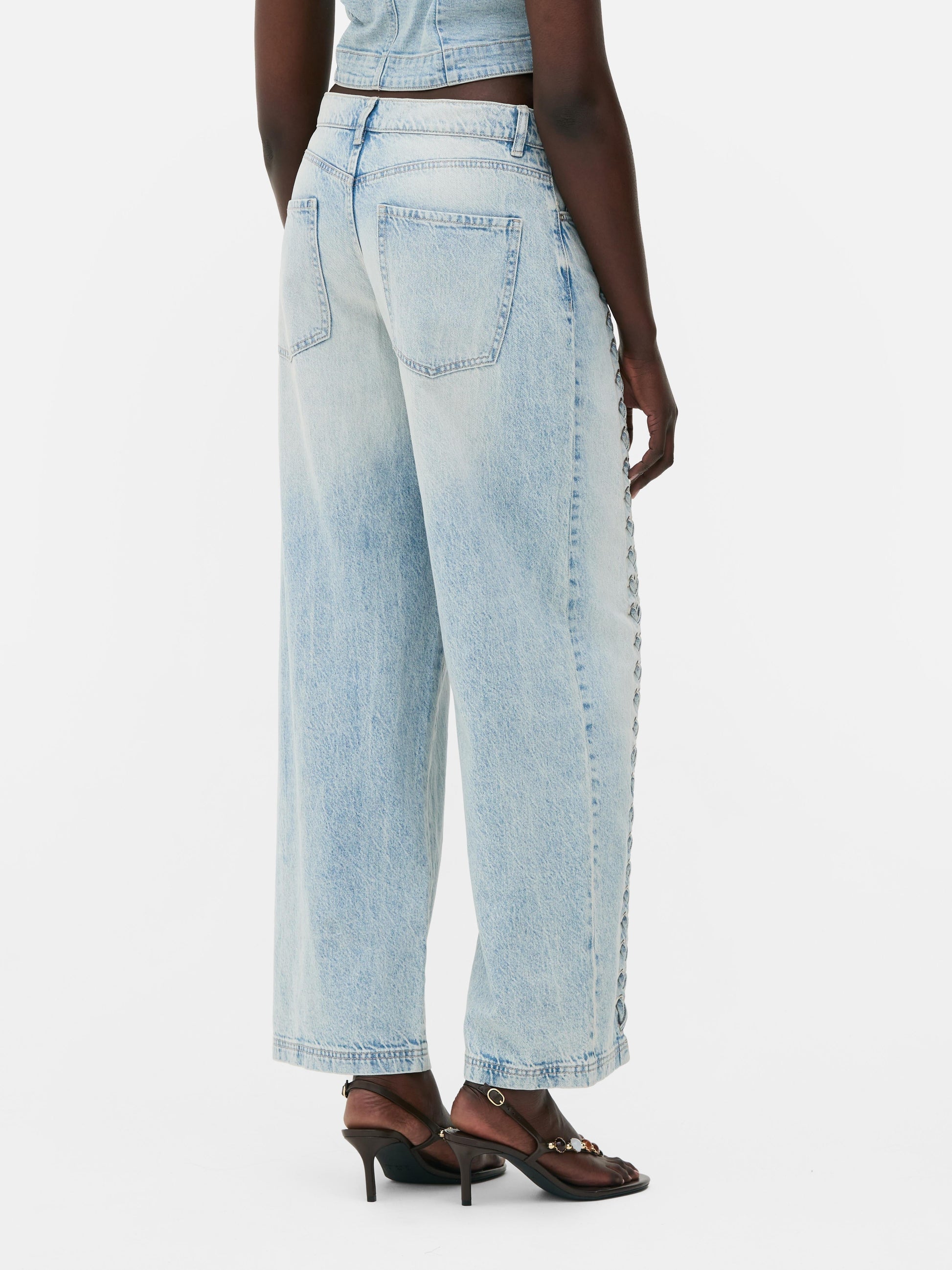Light Blue Lace - Up Wide - Leg Denim Jeans