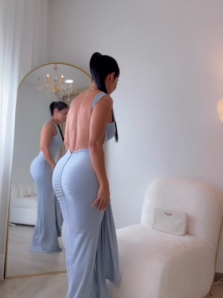 The long, flowing silhouette of the dress is perfect for formal events like evening weddings, galas, or upscale dinner parties. Paired with delicate jewelry and a clutch, it enhances the overall sophisticated look.