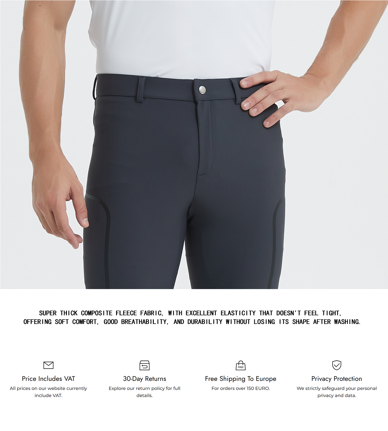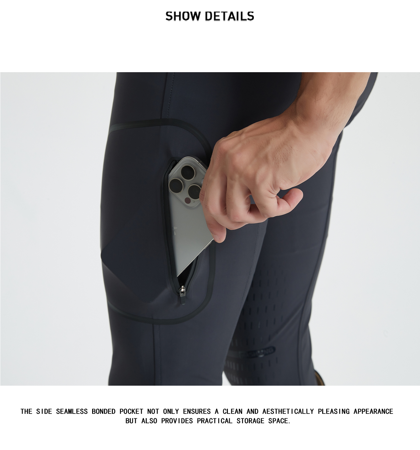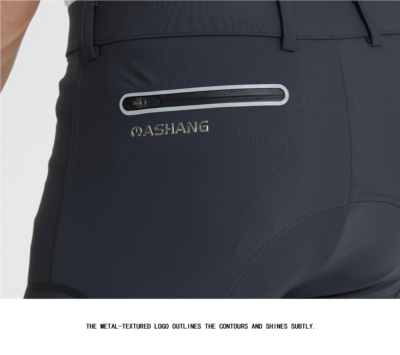 Mashang Equine Cuprammonia fiber laminated fabric:Cuprammonia fiber,giving constant cooling feel, ultra light, stretch, wrinkle resistant; Design Features: seamless lamination technology make the perfect laminated pocket, half grip,YKK zip, customized trousers button made in Germany.