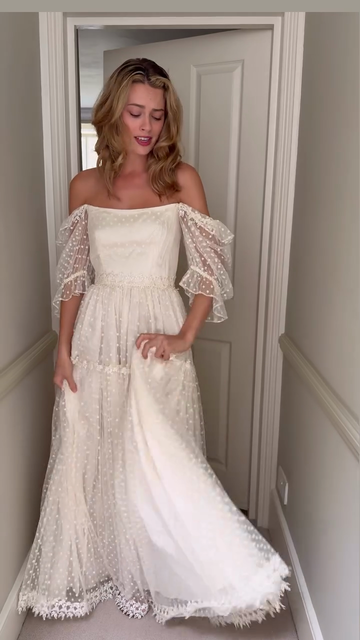 - Polka Dot Sheer Sleeves: Provide a playful and dreamy touch.