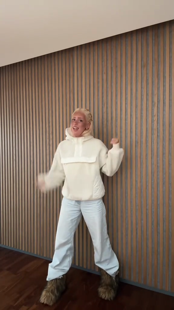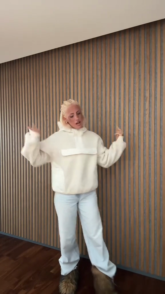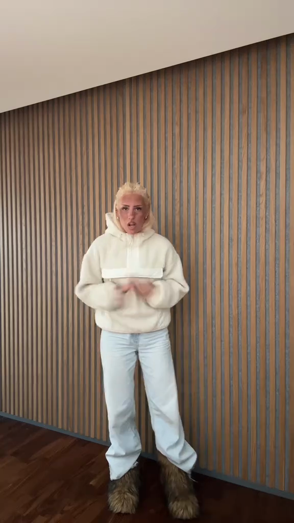This is an off - white hooded quarter - zip sweatshirt. It features a loose, comfortable fit and has a horizontal pocket - like detail on the chest. The person wearing it has paired the sweatshirt with light - wash jeans, creating a casual and relaxed outfit suitable for everyday wear, lounging, or running errands.