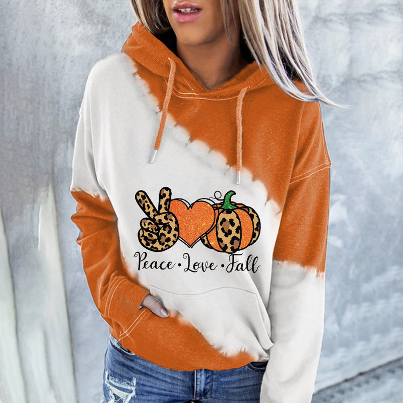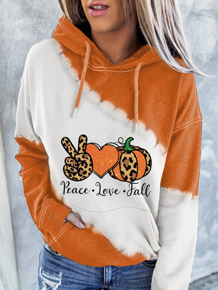 Peace And Love Halloween Print Casual Hoodie