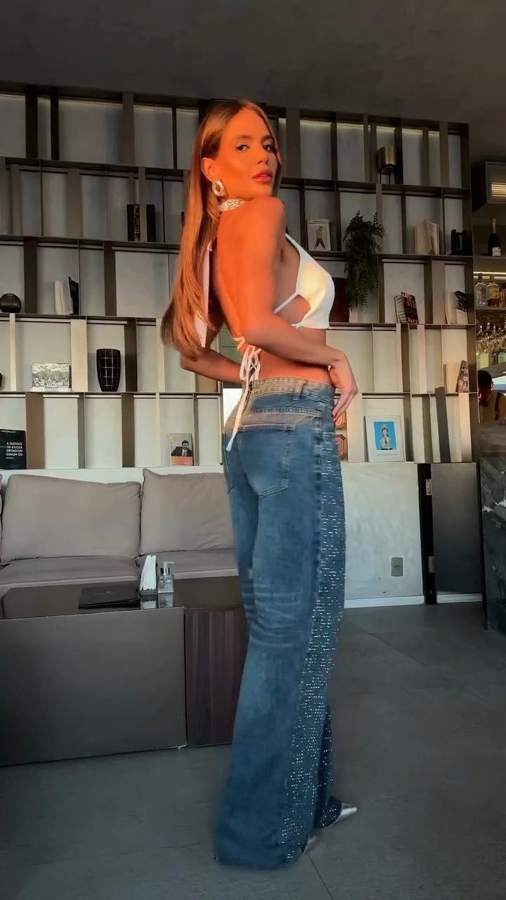 Shine in sophisticated style with this Rhinestone - Embellished Denim & Halter Crop Top Set. The crystal - choker halter top, paired with sparkle - detailed jeans, creates a glamorous, chic look. Perfect for nights out, social events, or adding a touch of luxury to your wardrobe. Pair with minimalist heels to complete the dazzling ensemble.