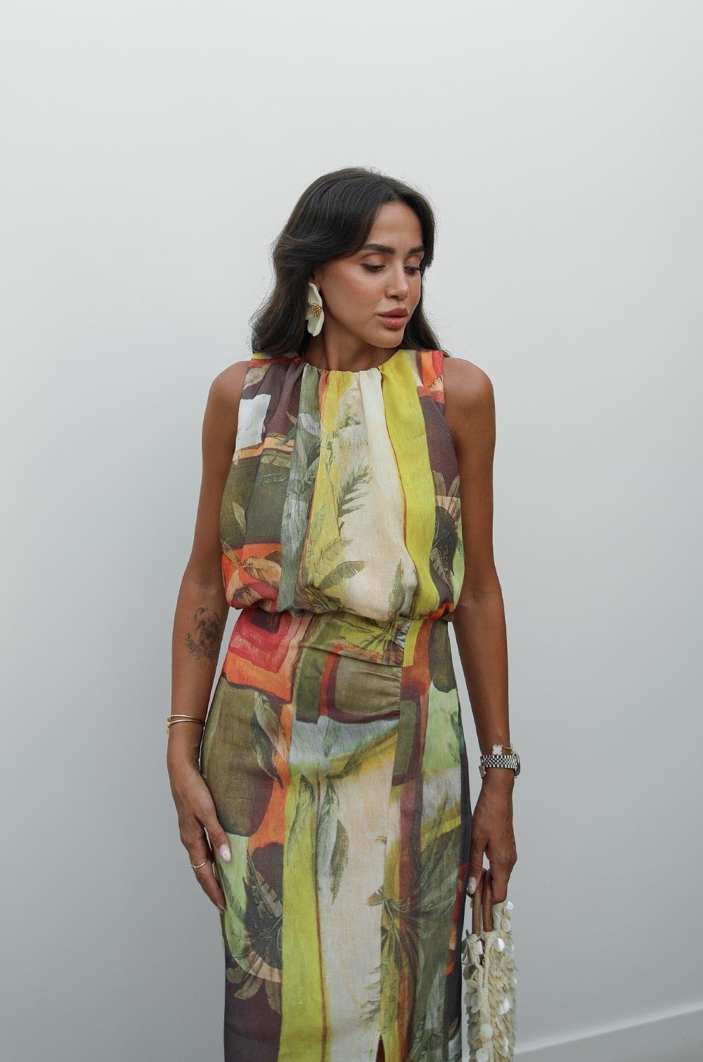 Sleeveless Abstract - Print Maxi Dress