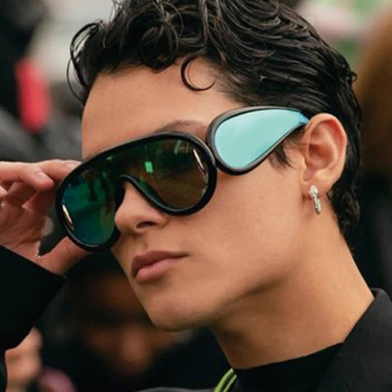 Spykay™ SG61002 Steampunk One-piece Frame Oversized Mirrored Sunglasses