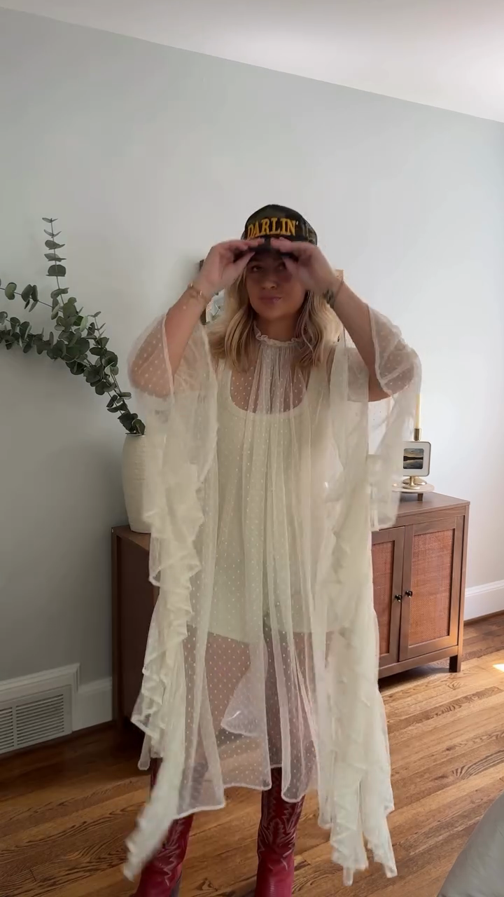 The Tulle Polka Dot Ruffle Dress is a charming and feminine piece. It features a delicate tulle fabric adorned with classic polka dots, creating a playful and airy look. The dress is accented with ruffled details, adding texture and a touch of whimsy to the overall design.The polka dots give it a timeless appeal, while the tulle and ruffle elements contribute to its romantic and youthful charm.