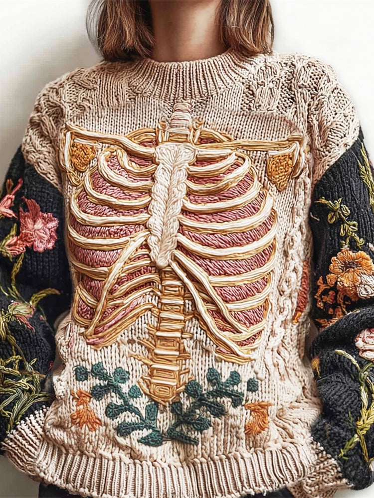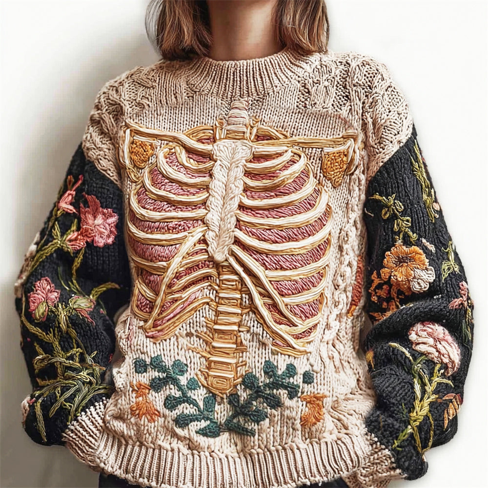 Vintage Anatomy & Floral Art Women's Knit Crew Neck Sweater