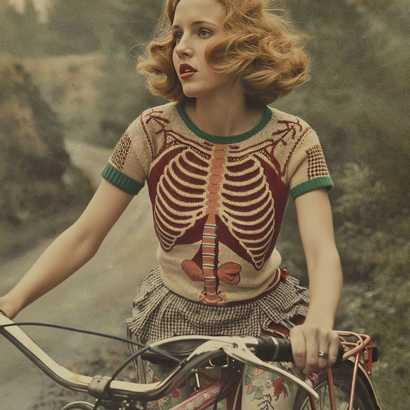 Vintage Classic Halloween Anatomy Art Short Sleeve Chunky Knitted Sweater