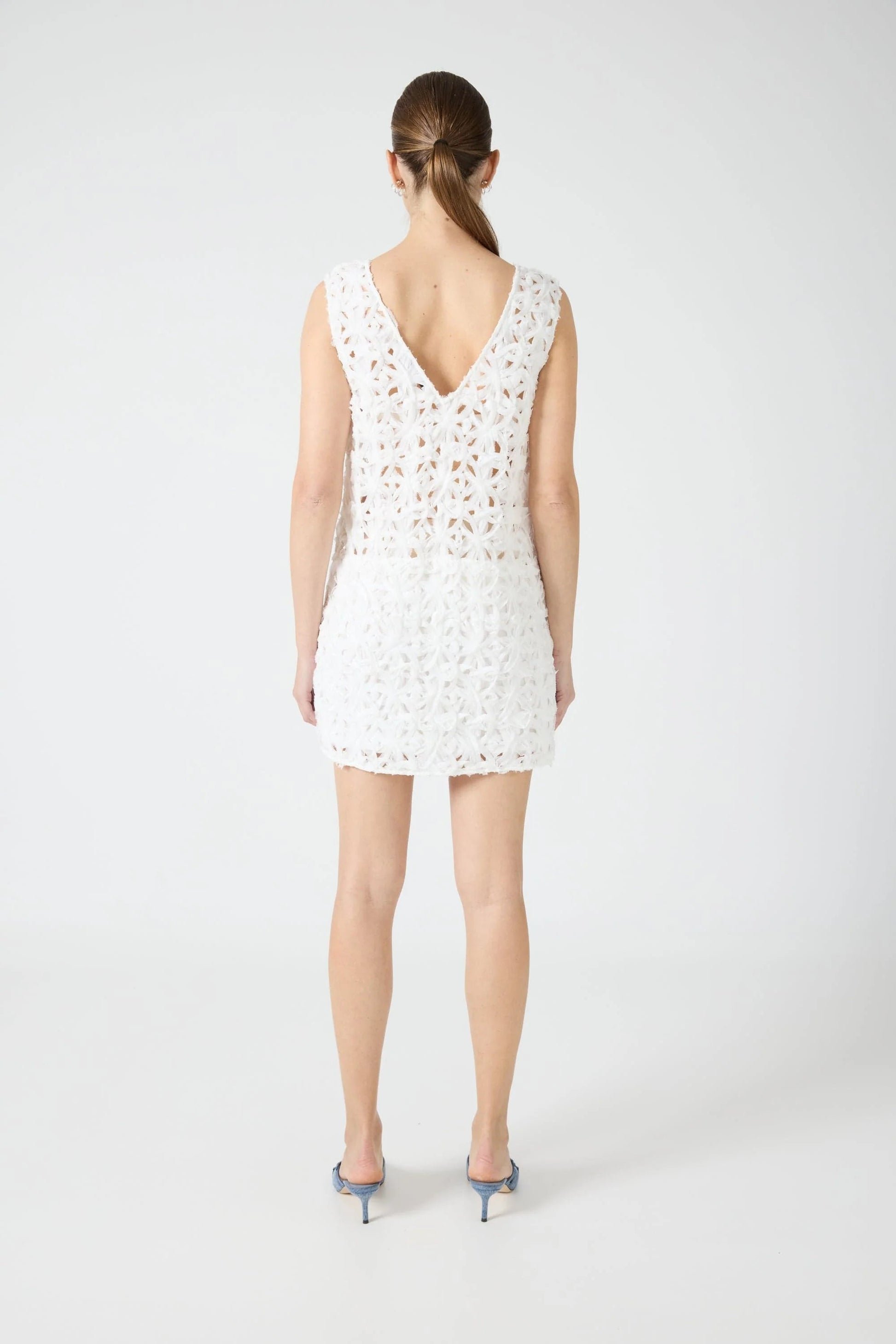 - Key Elements: White crochet, V - neckline, sleeveless, mini length.